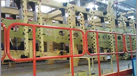 波音公司的带有D形框架的机身壁板自动钻铆机如图3所示。